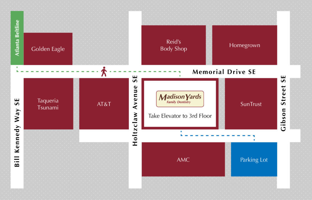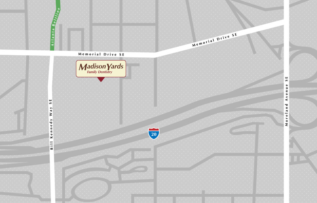 Madison Yards Family Dentistry is conveniently located in Reynoldstown close to Grant Park and the Atlanta Beltline in the Madison Yards development. The Madison Yards development is located on the corner of Memorial Drive SE and Billy Kennedy Drive SE.